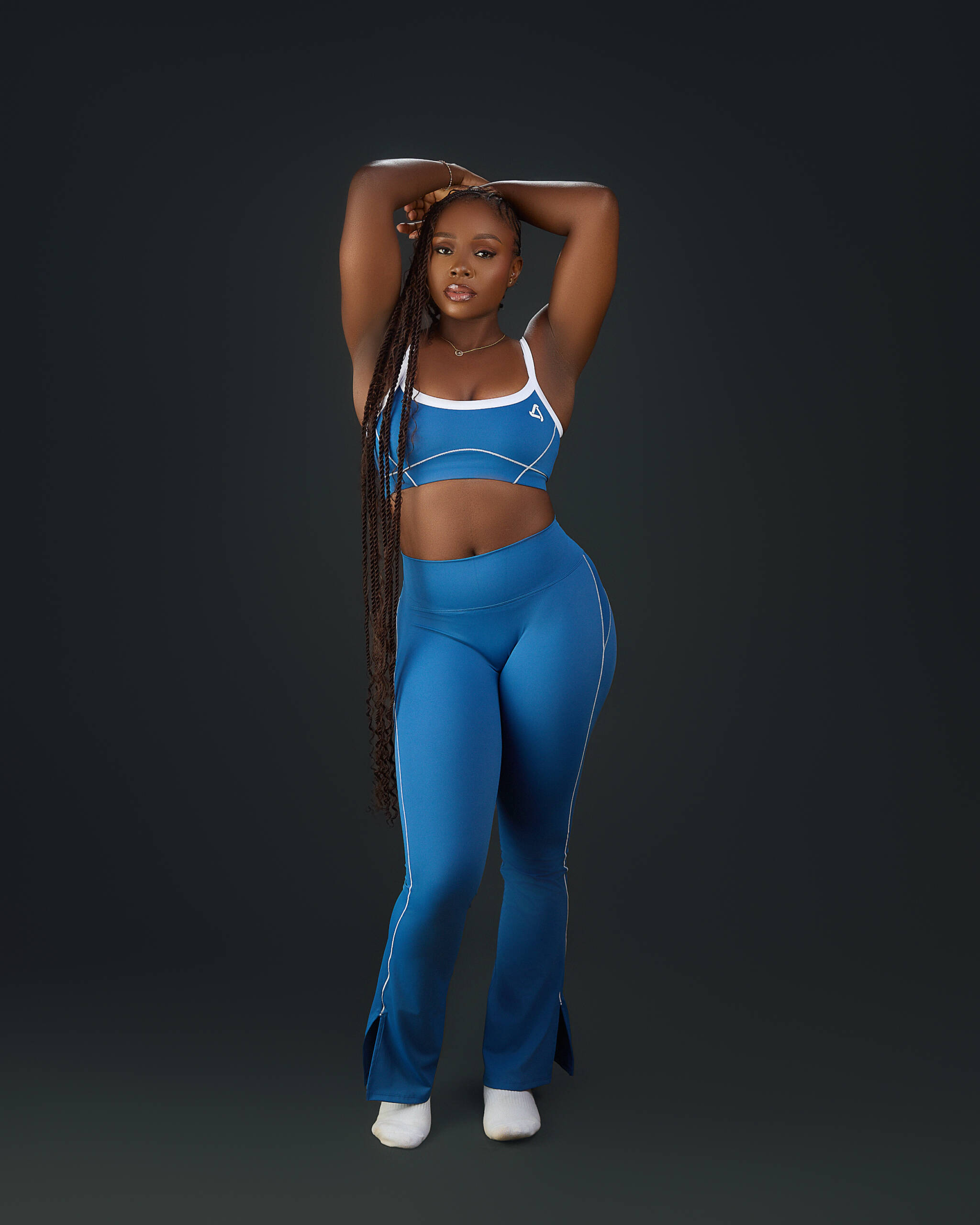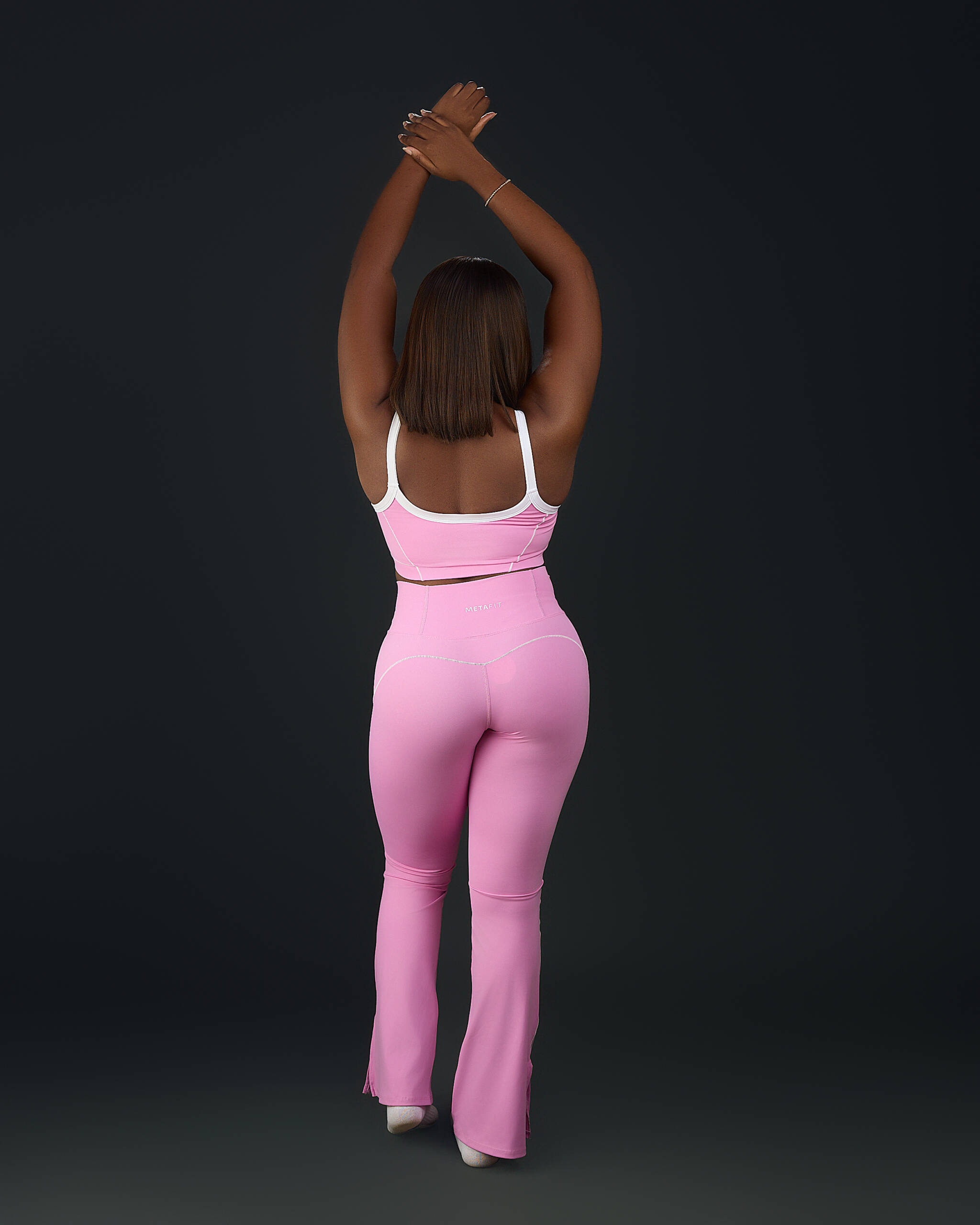 Performance designed for the woman who owns her energy, this sleek two-piece set combines a supportive sports bra sports bra with high-waisted flare leggings, creating a flattering silhouette that moves with you.